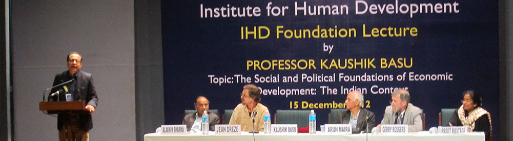 Prof. Kaushik Basu, Chief Economist, World Bank will be delivering the IHD Foundation Lecture on the topic “The Social and Political Foundations of Economic Development: The Indian Context” on December 15, 2012 in Teen Murti Auditorium, Nehru Memorial Museum and Library at 5.00 p.m. Mr. Arun Maira, Member, Planning Commission will preside and well known economists Dr. Jean Dreze and Dr. Gerry Rodgers will be commentators on this occasion. We expect a strong gathering of intellectuals, policy-makers and social scientists at the lecture.